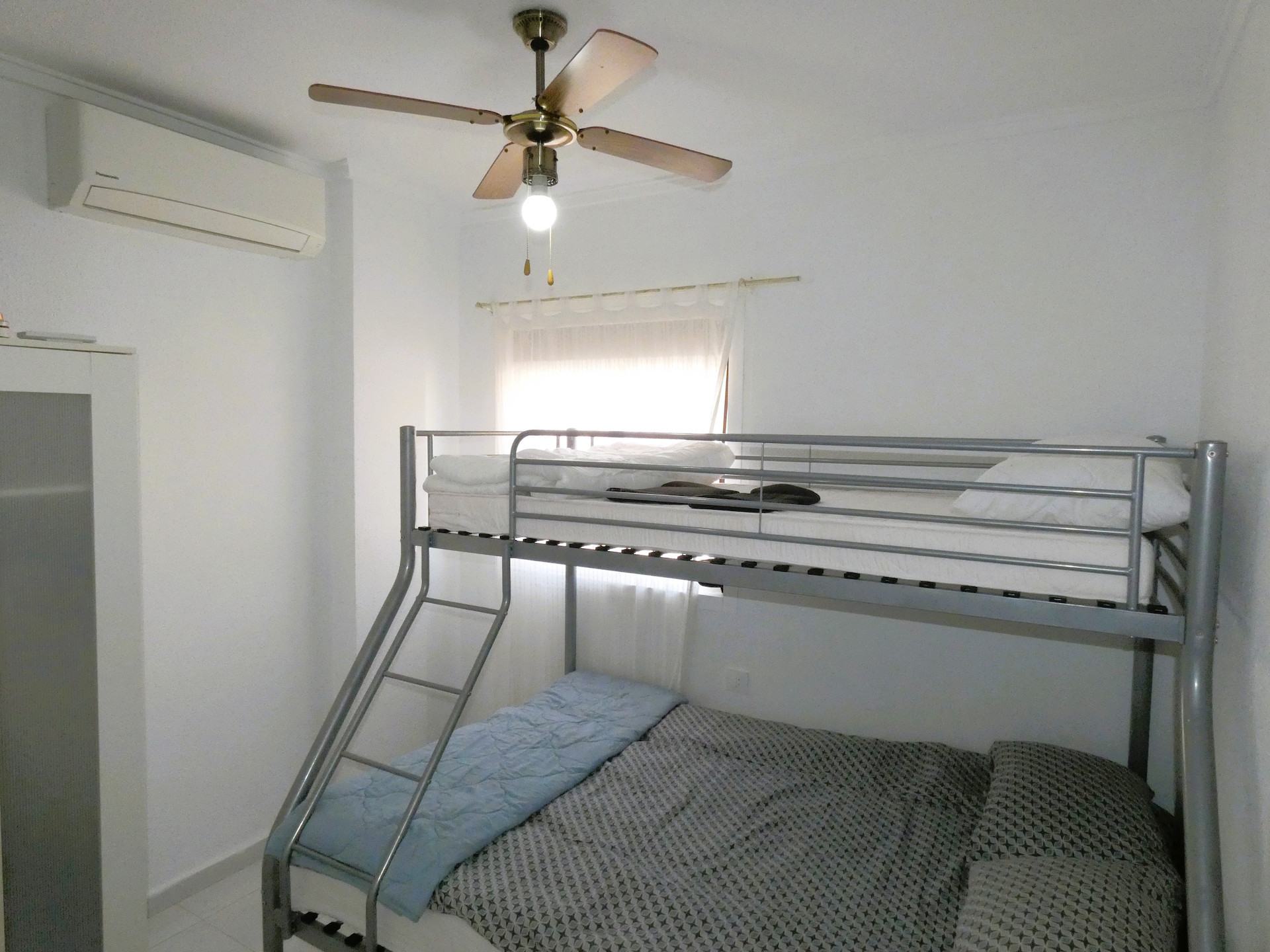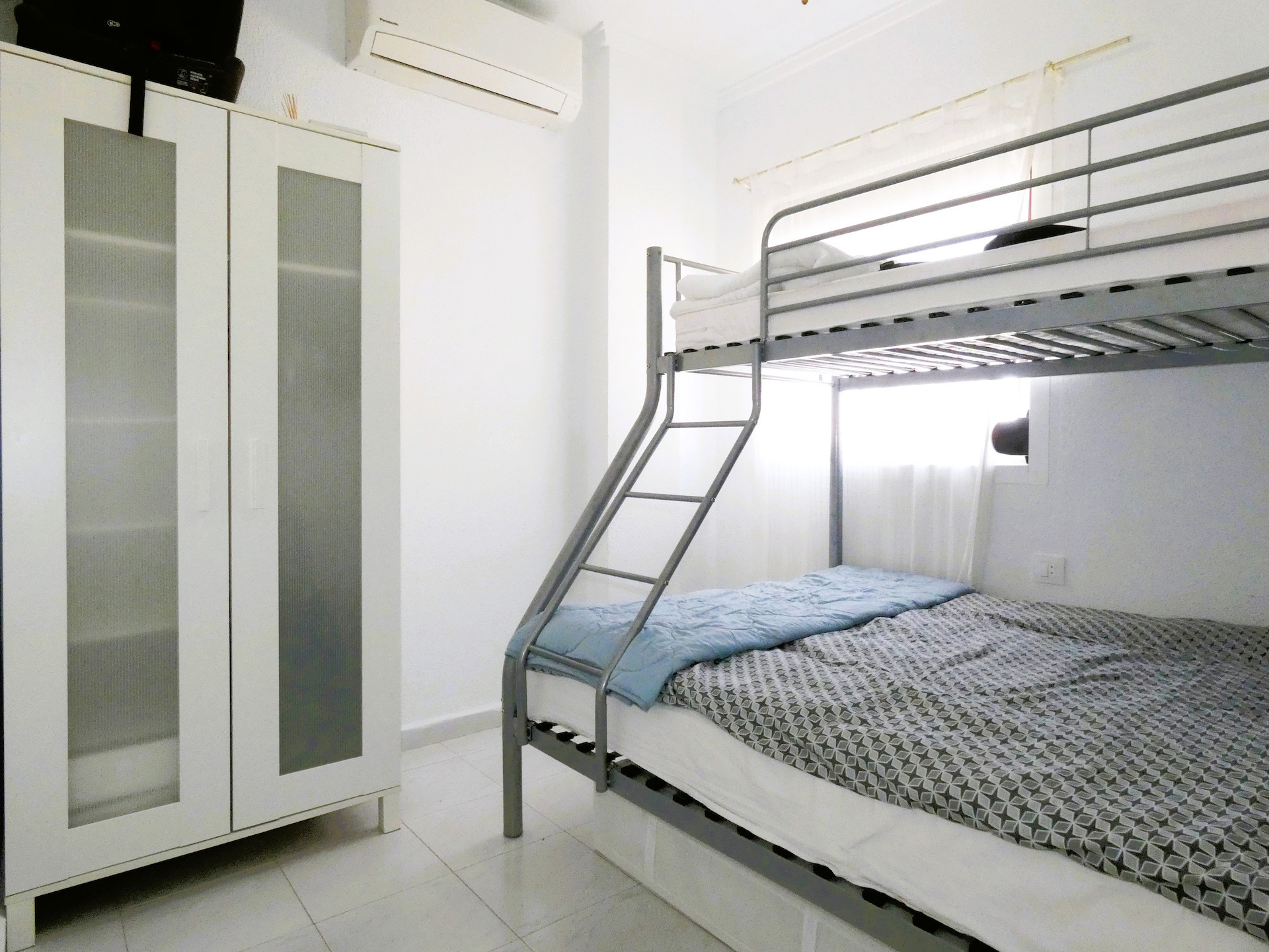 Lägenheten har öppen planlösning, ett fullt utrustat kök samt rymligt vardagsrum med direkt utgång till terrassen. Samtliga sovrum har AC och takfläkt, vilket gör bostaden behaglig året runt.