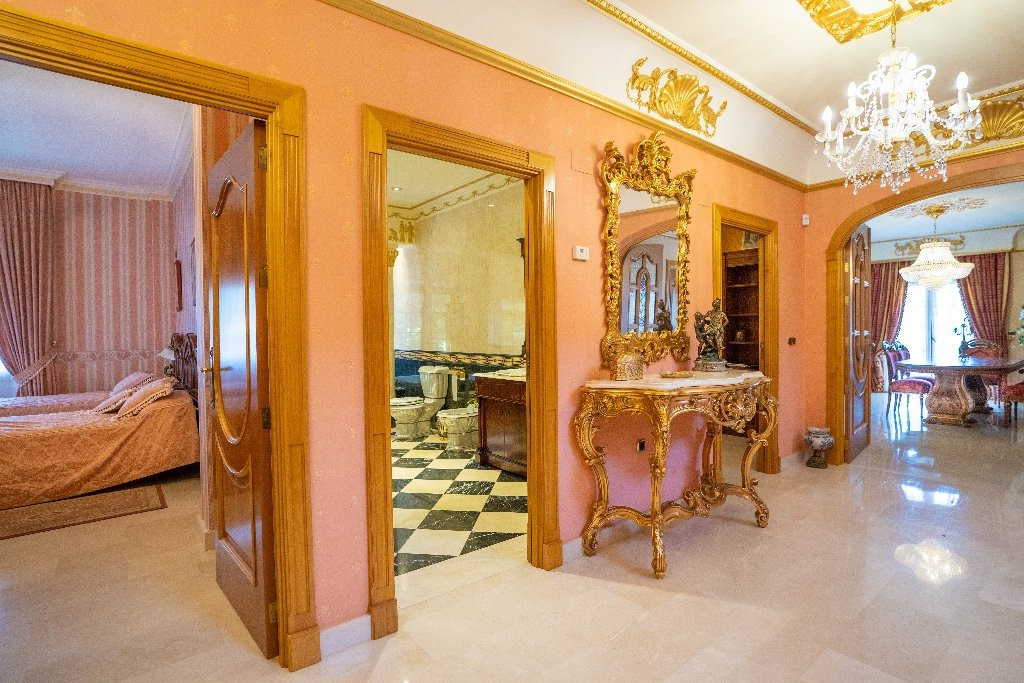 For sale villa near the sea in one of the most prestigious areas of the Costa Blanca - Campoamor.House of 734 m2 consists of 7 bedrooms, 6 bathrooms, 2 kitchens one with the dining area,a cabinet , utility room. The property has high-quality materials, marble floors, heigh ceiling of 3m, heating. On the territory of the villa there is a swimming pool 4x8, nice garden and an underground parking for 3 cars. There are 2 open plan terraces where you can admire the amazing landscapes of the Costa Blanca. This house is ideal for all-year-round living with the family or for the short holiday season as well.An ideal combination of nature and developed infrastructure, because everything you need is close to you - shops, bars, restaurants, pharmacies, schools, banks, sports complexes and large shopping centers ... Golf courses, the unique salt lakes of Torrevieja and many authentic Spanish cities.