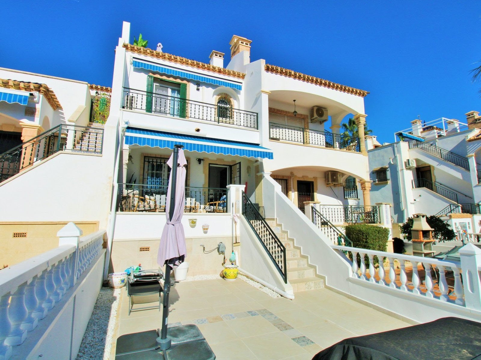 Fastigheten säljs fullt möblerad, inkluderar luftkonditionering och presenteras i perfekt skick. Bara en kort promenad från ett fantastiskt utbud av restauranger, barer, butiker och golfbanan, och bara några minuter med bil till Zenia Boulevard och de blåflaggade stränderna på Orihuela Costa.
