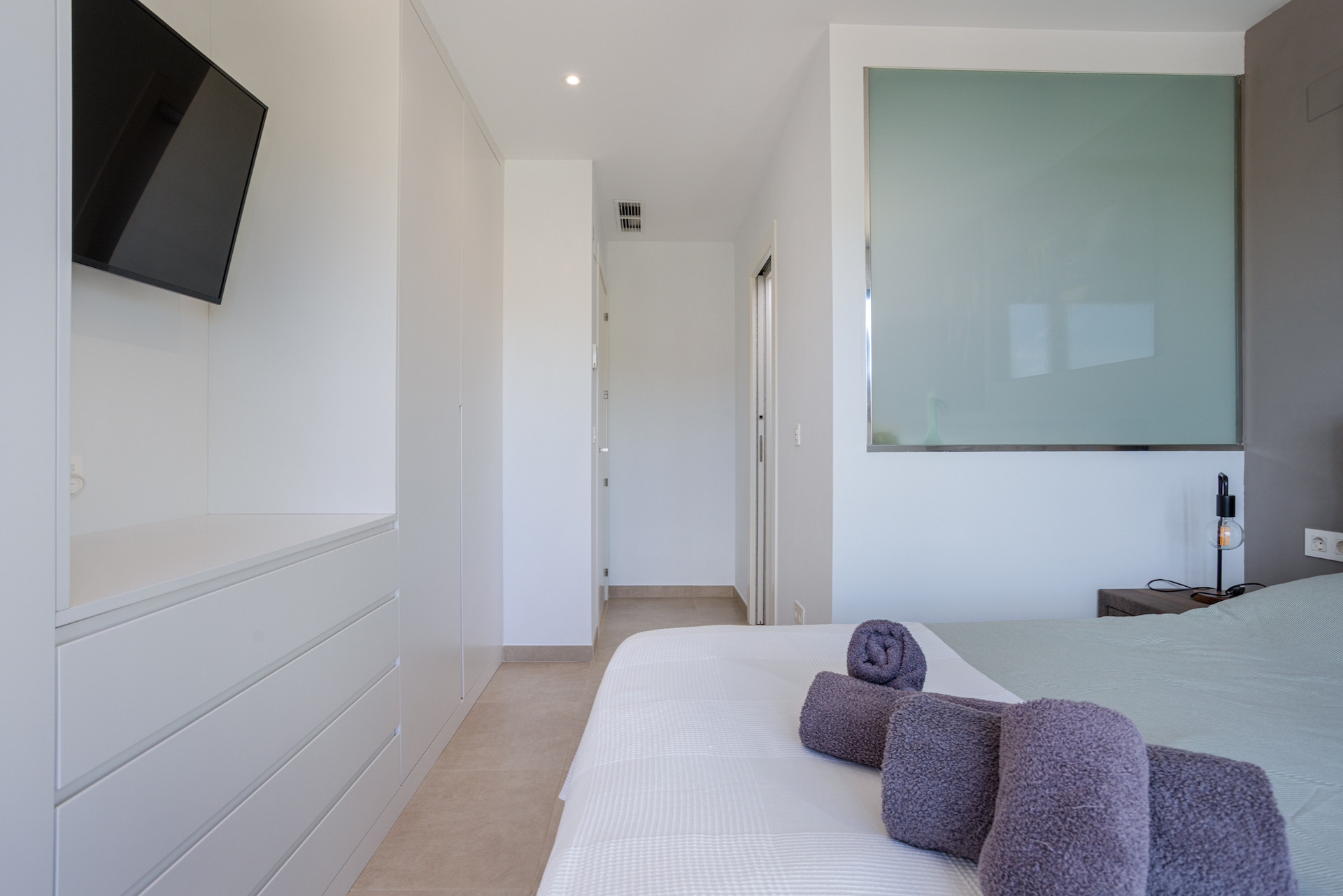 Huset har tre sovrum, alla med eget badrum (en-suite). Ett av dem används för närvarande som walk-in-closet och ett annat som kontor, men båda kan enkelt återställas till sin ursprungliga funktion.
