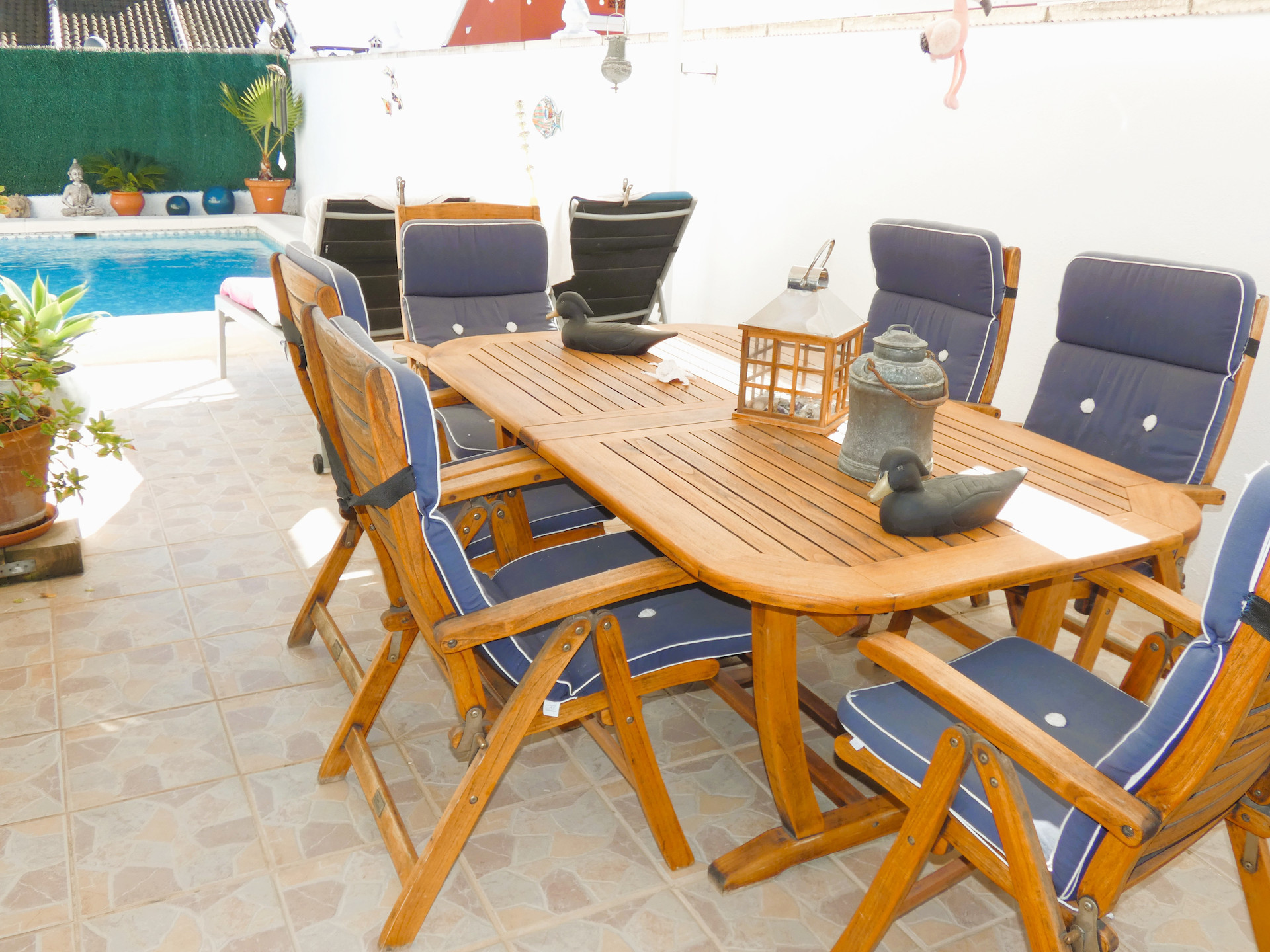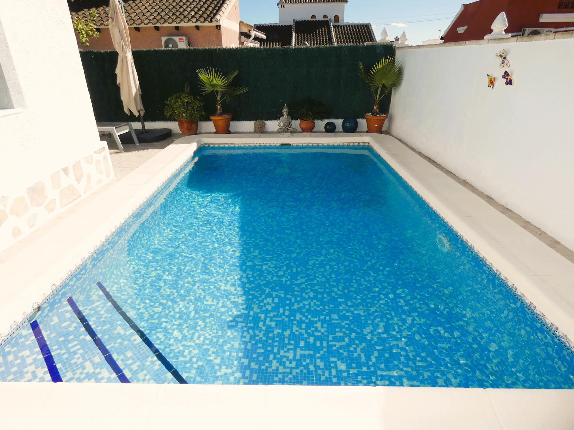 Här finner du en fin villa omgiven av grönska och med privat pool på 6 x 3,5m. Det finns plats för solstolar runt poolen och en magiskt mysig veranda med eftermiddags- och kvällssol. Här kan man verkligen njuta av livet.