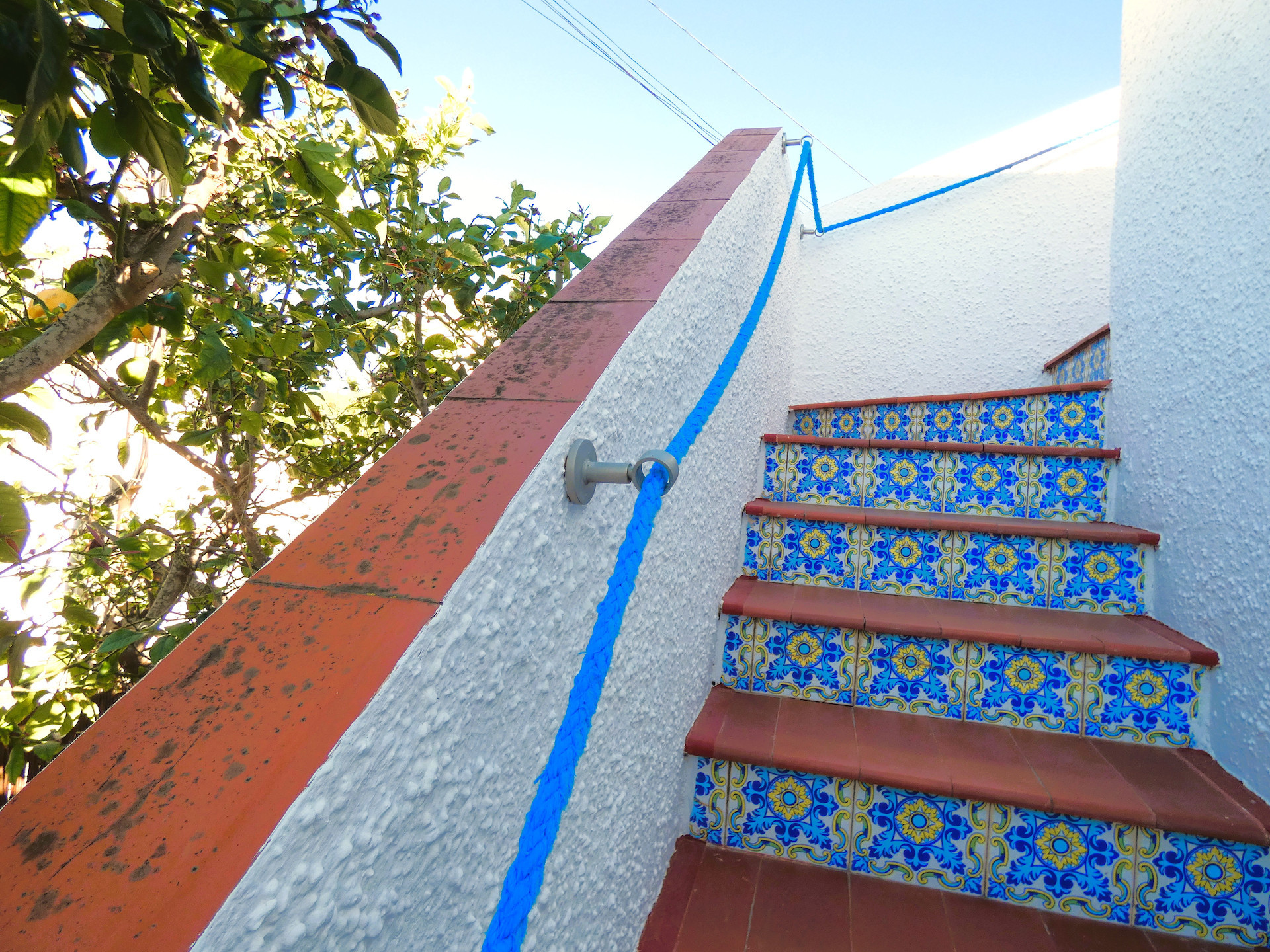 I dag används carporten som matplats med skydd från solen men man kan lika gärna ha sin bil där. På tomten finns även förråd och pallkragar för lite egen odling. Här finns också en vackert dekorerad trappa upp till takterrassen som är en underbar oas med en orientalisk touch. Här finns plats för både ett stort matbord och loungemöbler samt ett utekök.