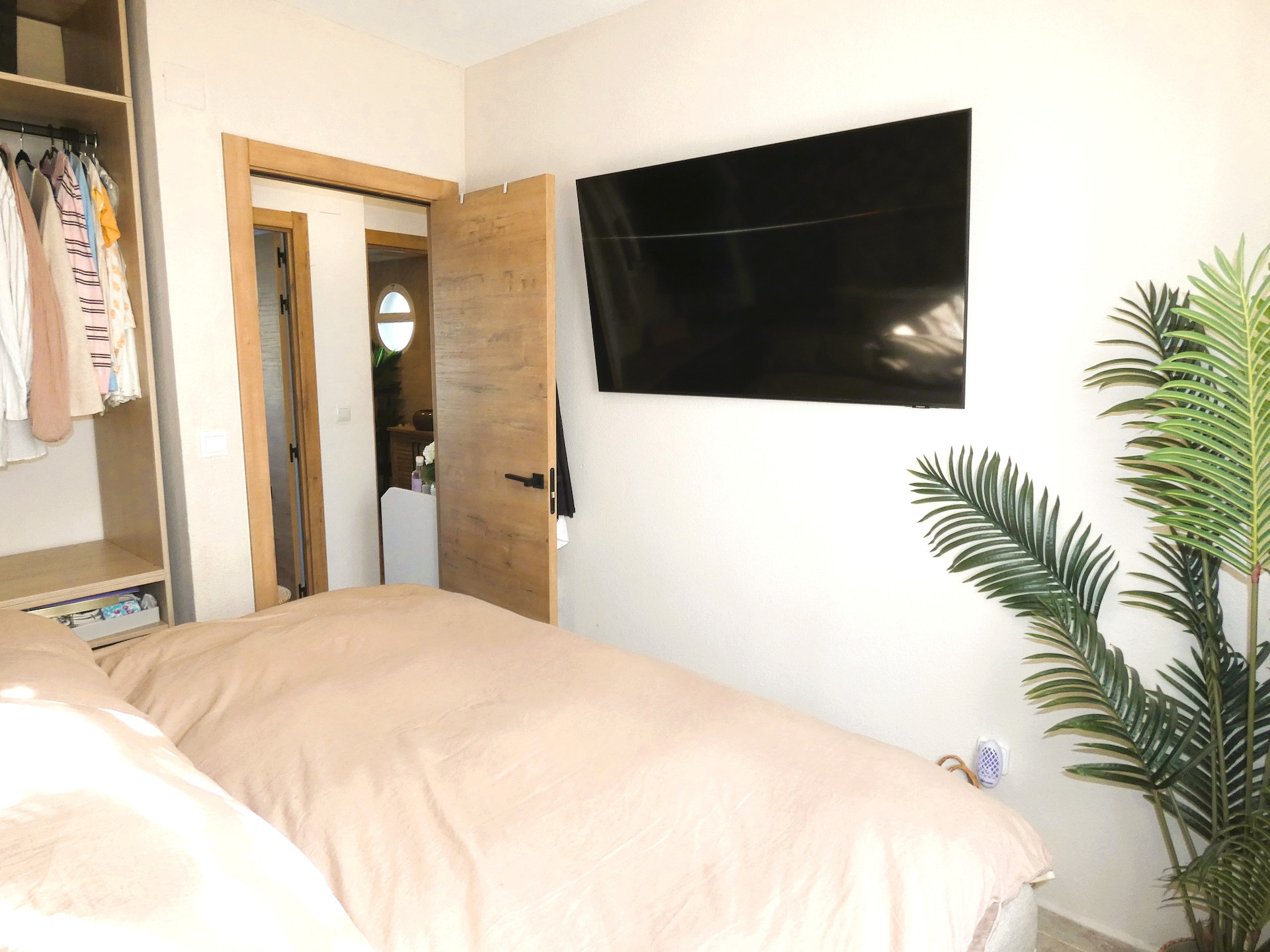 Vi är stolta att presenterar denna mysiga och totalrenoverade Bungalow som är smakfullt inredd och ligger i populära området Los Altos, Punta Prima. Bostaden erbjuder två sovrum, ett badrum, vardagsrum och ett modernt kök, allt designat för komfort och stil av bästa kvalitet och snyggt inredd. Bostaden har två rymliga uteplatser en främre och en bakre, här kan man välja om man vill ha en avkopplande plats i solen eller en mysig stund i den bakre uteplatsen i hammocken och som dessutom har access ut till den gemensamma poolen. Hela området är som en mysig oas och är inramat i härlig grönska.