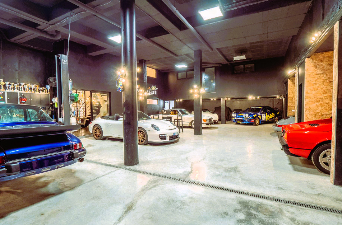 Halvkällarvåningen kompletterar bostaden med en gäststudio som erbjuder ett privat sovrum, vardagsrums- och matplats, samt ett eget badrum med dusch och golvvärme. Fönster från golv till tak möjliggör en direkt vy över det spektakulära garaget, vilket skapar en unik atmosfär för bilentusiaster. Denna nivå inkluderar även ett nöjesområde utrustat med kök och matplats, perfekt anslutet till garaget för 12 bilar, utformat som ett riktigt utställningsgalleri.