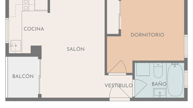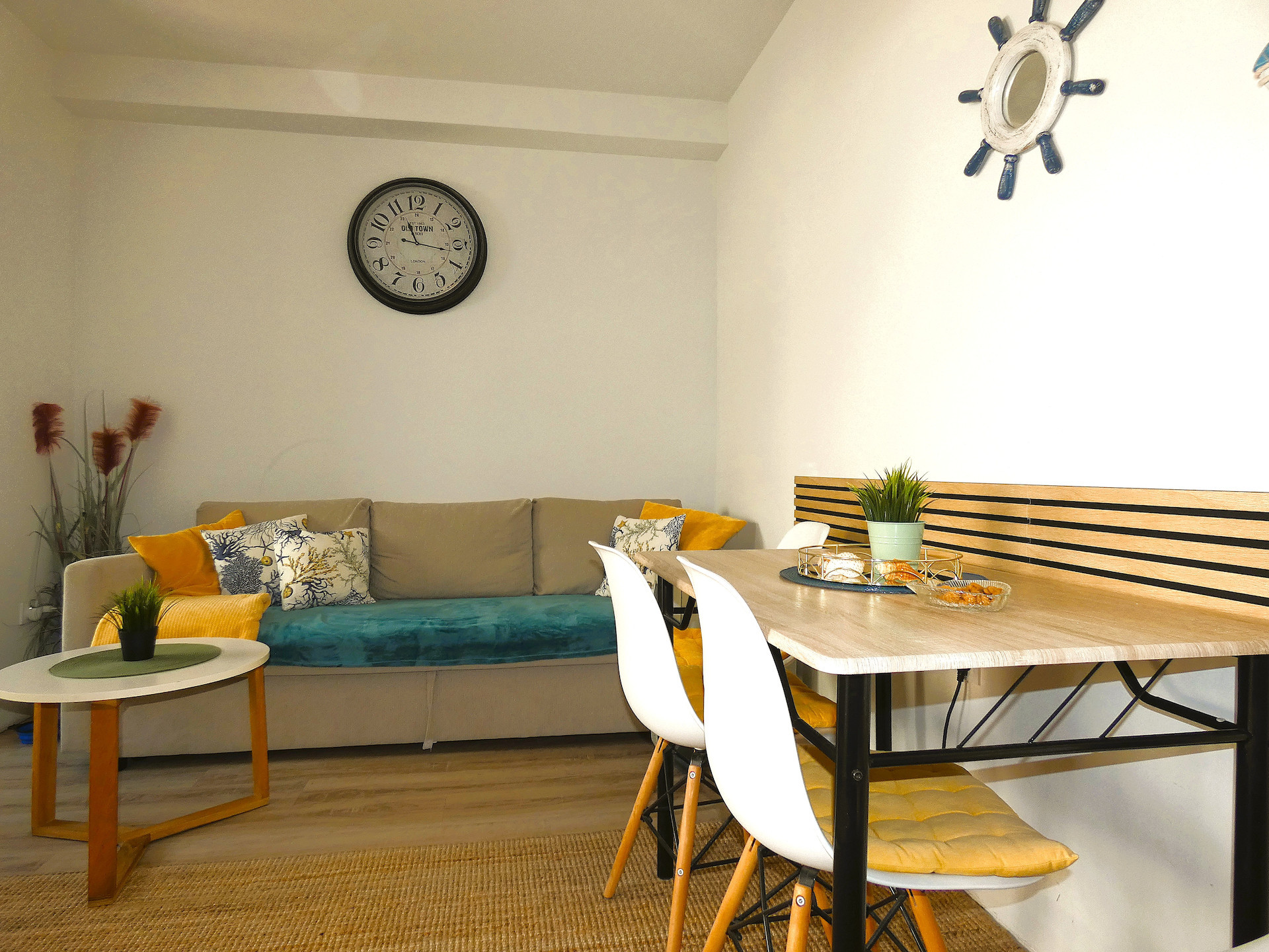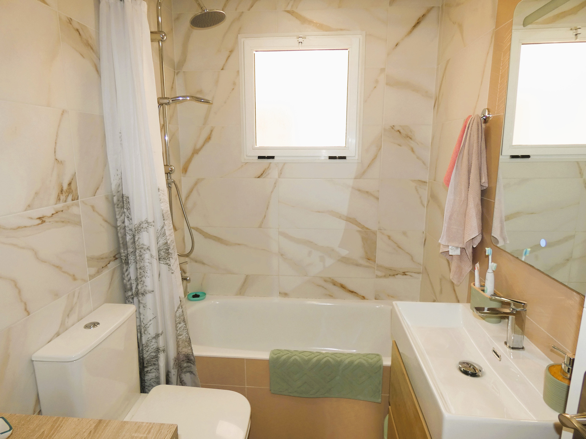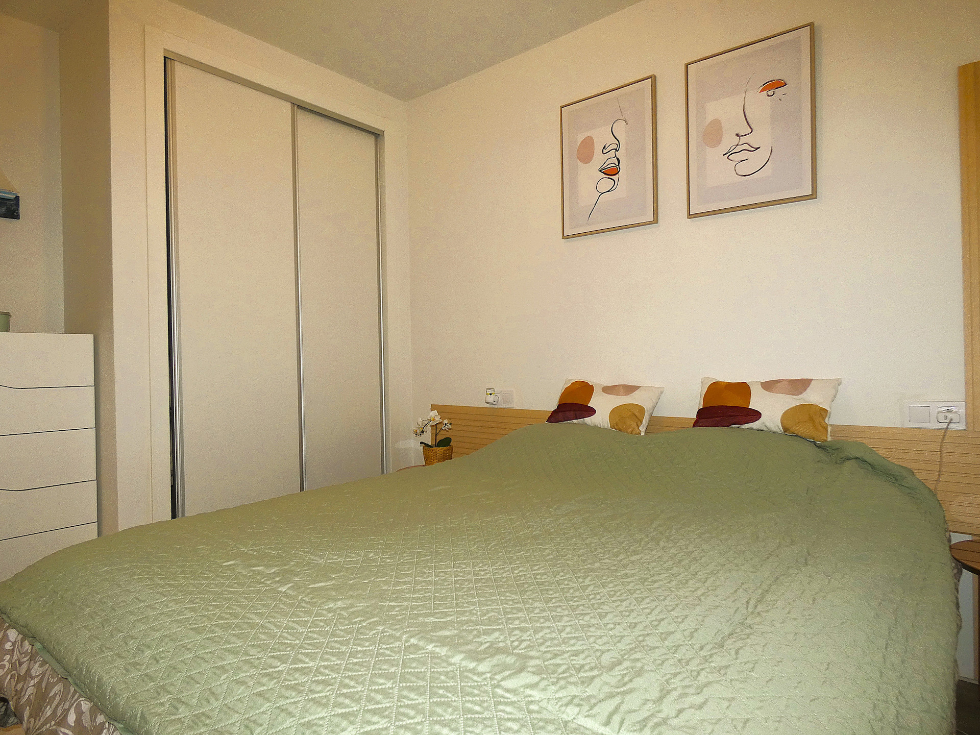 Det stora sovrummet har en praktisk inbyggd garderob, medan det kompletta badrummet är utrustat med ett klassiskt badkar. Från vardagsrummet kommer man ut till en mysig balkong på 3 m², den perfekta platsen för att njuta av det medelhavsklimatet.