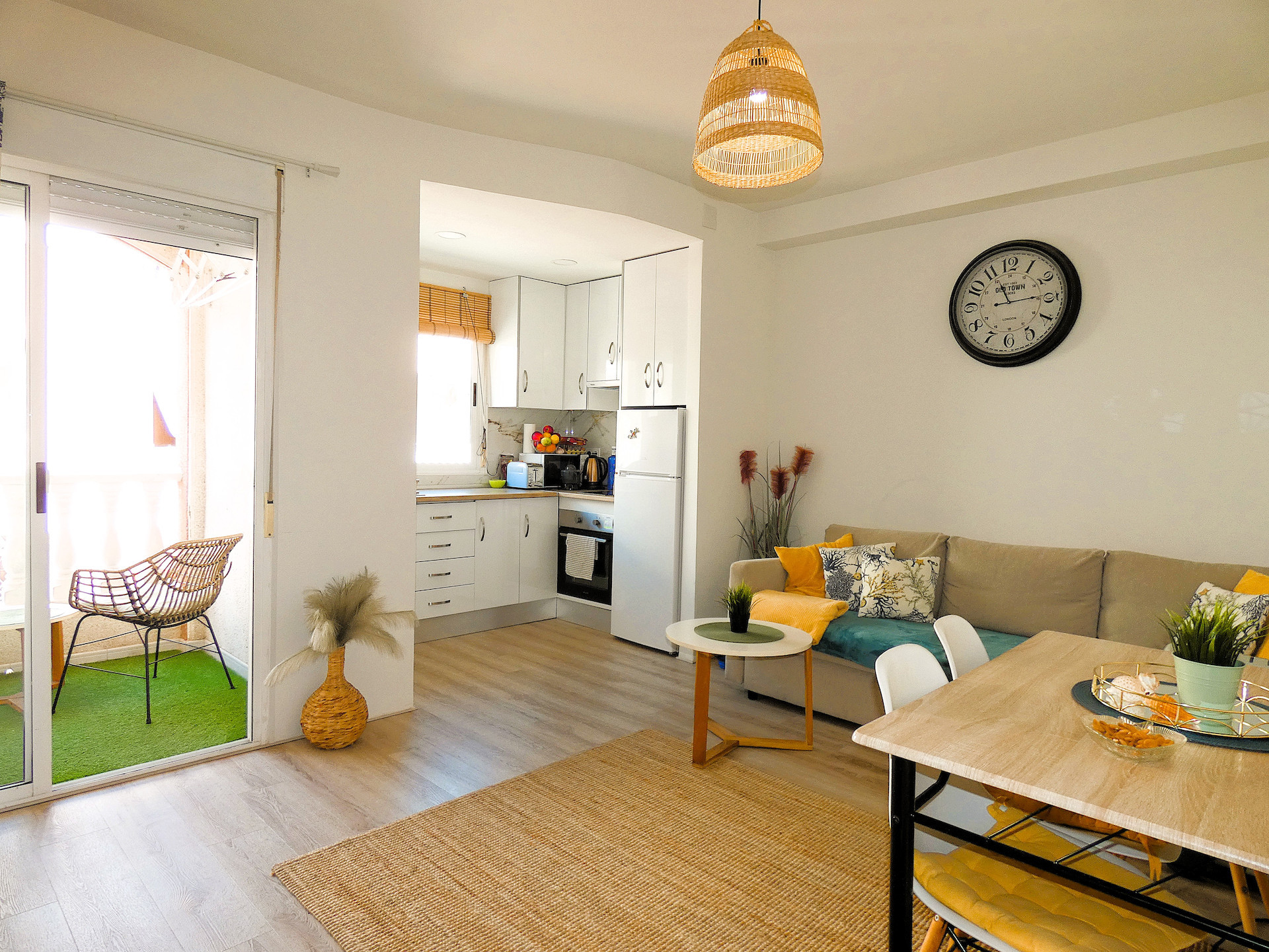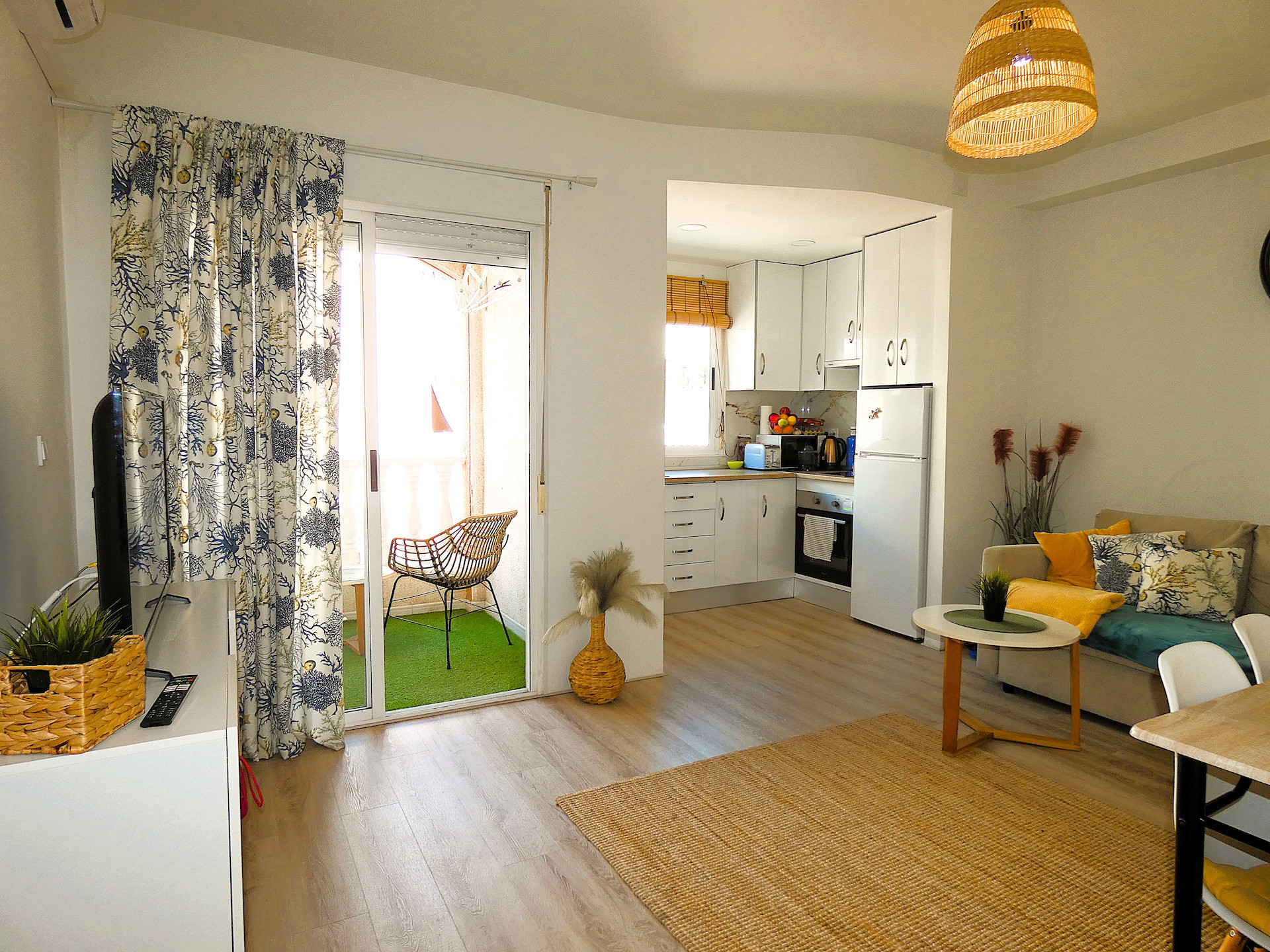 Vi presenterar denna exklusiva lägenhet som nyrenoverades 2025, en modern pärla belägen endast 400 meter från stranden i det eftertraktade området El Palangre i Torrevieja.