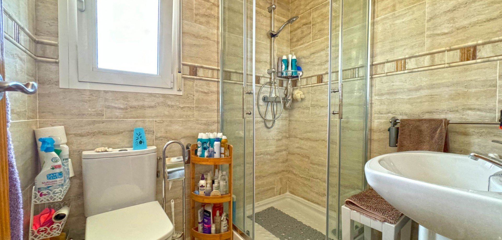 Detta hus på 340 m² ligger på en generös tomt på 1000 m², vilket ger gott om plats för bekvämt boende. Fastigheten ståtar med en vacker terrass och ett solarium, perfekt för att njuta av fantastisk panoramautsikt och extra utomhusutrymme. Utrustat med luftkonditionering och värme garanterar detta hem komfort året runt.