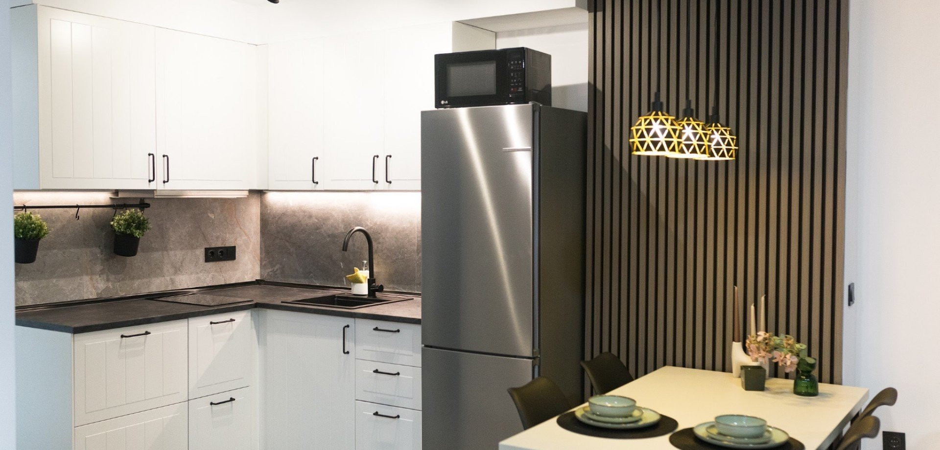 Fastigheten har en byggd yta på cirka 80 m² och har två sovrum och ett badrum, vilket gör den idealisk som semesterbostad, permanentboende eller investering på Costa Blanca.
